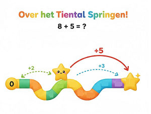 Hoe reken je 8 + 5 snel uit? Gebruik de 10 als tussenstation!