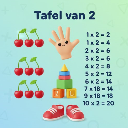 De tafel van 2 is hetzelfde als alles verdubbelen.