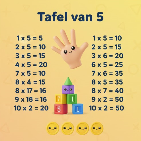 De tafel van 5 eindigt altijd op een 0 of een 5.